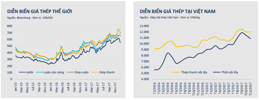 Chính sách cắt giảm sản lượng thép để giảm ô nhiễm tại các tỉnh miền Bắc sẽ kéo dài đến tháng 3/2018. Mức sản lượng sụt giảm khoảng 12% sẽ tiếp tục hỗ trợ giá thép ít nhất đến cuối quý I/2018. Hiệp hội thép Thế giới dự báo tổng tiêu thụ thép toàn cầu năm 2018 tăng 1,6% nhờ nhu cầu tăng trưởng từ các quốc gia đang phát triển và quá trình phục hồi kinh tế thế giới.