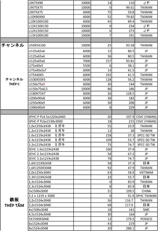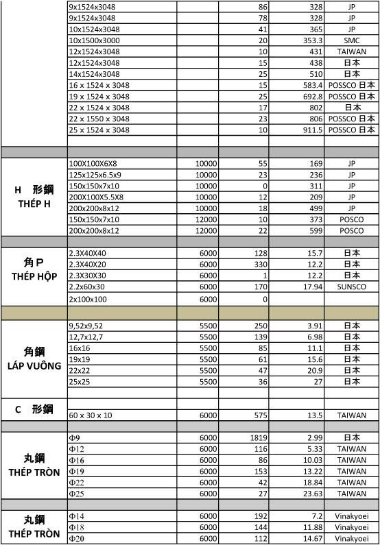 Công ty MASAKATSU KOUZAI VIETNAM . 100% vốn Nhật Bản.Chuyên cung cấp các mác thép SS400. như Flat bar , thép tấm, thép hình ( U. V I ) láp tròn , vuông , và thép hộp . các loại thép đặc chủng..Với đầy đủ các chủng loại và kích thước khác nhau.Sản phẩm đầy đủ chứng chỉ chất lượng của nhà sản xuất.