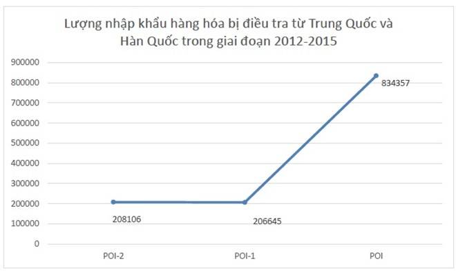 Theo các thông tin do Bên yêu cầu cung cấp trong hồ sơ, Bên yêu cầu cho biết lượng nhập khẩu hàng hóa bị điều tra trong giai đoạn từ T7/2014-T6/2015 (POI) tăng hơn 400% so với giai đoạn trước đó.