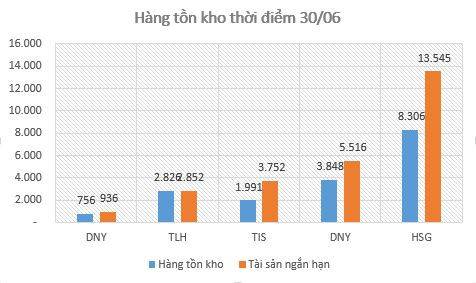 Hay Thép Tiến Lên (mã TLH) cũng có tỷ trọng hàng tồn cao ngất ngưởng ở mức 70% tài sản ngắn hạn, tương đơng 2.019 tỷ đồng. Cả DNY và TLH đều đã ghi nhận sự sụt giảm mạnh về lợi nhuận kỳ vừa qua với mức giảm lần lượt -50% và -42,9%.