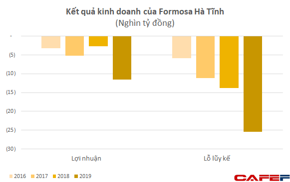 Theo số liệu của chúng tôi, năm 2019 Formosa Hà Tĩnh đạt doanh thu 71.664 tỷ đồng, tăng 11,66% so với năm 2018 (64.175 tỷ). Tuy nhiên lợi nhuận trước thuế của công ty này lỗ 11.538 tỷ đồng, năm 2018 lỗ 2.727 tỷ đồng. Như vậy tính ở thời điểm này Formosa Hà Tĩnh lỗ lũy kế lên đến 25.388 tỷ đồng, tương đương gần 1,1 tỷ USD, bằng 1/5 vốn điều lệ.
