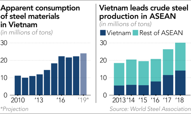 Tiêu thụ thép của Việt Nam đã vượt qua Thái Lan vào năm 2016. Trước đó, Thái Lan là nước tiêu thụ thép lớn nhất Đông Nam Á. Thép thường được tiêu thụ ở chính quốc gia nơi nó được sản xuất và ngành công nghiệp này đang vật lộn để phát triển mà không có sự hỗ trợ của chính phủ.