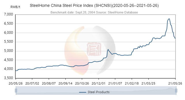 Như trên biểu đồ, từ 18/05/2020 đến ngày 15/05/2021 giá thép tăng liên tục. Và từ 16/05 giá có dấu hiệu giảm, nhưng theo dự báo thì giá thép sẽ vẫn tiếp tục tăng.