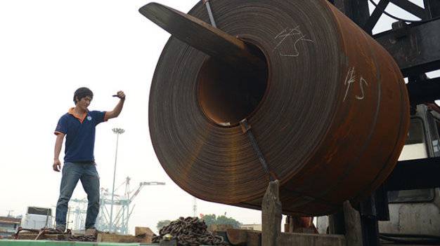 Nhập khẩu thép tại cảng Bến Nghé, Q.7, TP.HCM – Ảnh: Quang Định