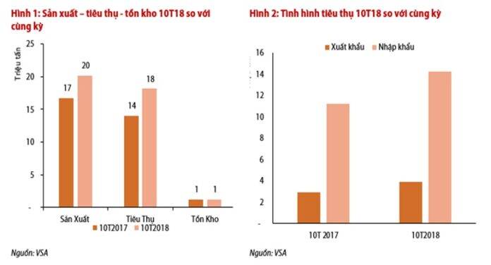 Theo báo cáo ngành thép 10 tháng của CTCP Chứng khoán Rồng Việt (VDSC), thị trường thép Việt Nam 10 tháng vẫn duy trì tích cực với sản lượng tiêu thụ tăng 28% so với năm ngoái. Trong đó, tiêu thụ nội địa tăng 27% và xuất khẩu tăng 33%.