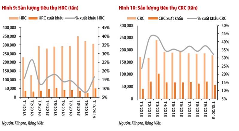 Theo VDSC, tỷ trọng xuất khẩu HRC là không đáng kể do nhu cầu nội địa từ các công ty tôn mạ là rất lớn trong khi khâu sản xuất thép cán nguội (CRC) đã được tự chủ phần lớn nên tỷ trọng xuất khẩu cao hơn nhiều và đây là một trong những mặt hàng bị tập trung đánh thuế lẩn tránh do giá trị gia tăng từ HRC là không cao.