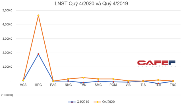 Nhỉnh hơn tí có Thép tấm lá Thống Nhất (TNS) lãi chưa đến 1,5 tỷ đồng, giảm 70% so với cùng kỳ còn Gang thép Thái Nguyên lãi sau thuế 2,9 tỷ đồng. Tuy vậy, nếu so với lợi nhuận quý 4/2019, Gang Thép Thái Nguyên vẫn được tính là “tăng bằng lần” với tỷ lệ gấp 7 lần cùng kỳ năm 2019.