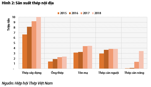 Thứ hai, khối sản xuất trong nước đã phát triển rất nhanh chóng trong vài năm vừa rồi để đáp ứng nhu cầu thép trong nước, đặc biệt để thay thế hàng nhập khẩu. Trong 4 năm 2015-2018, ngành sản xuất thép xây dựng, ống thép và tôn mạ đã tăng lần lượt 51%, 69% và 40% sản lượng sản xuất, cho thấy giảm nhập khẩu thực chất là thành quả của việc phát triển nguồn cung trong nước. Thêm nữa, giảm phụ thuộc vào nhập khẩu còn mang lại nhiều lợi ích về mặt kinh tế vĩ mô liên quan đến công ăn việc làm và cán cân thương mại.