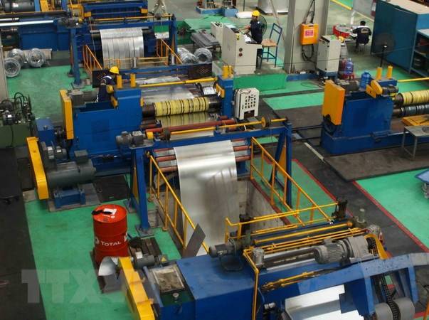 Sản xuất tôn mạ kẽm tại nhà máy tôn Hoa Sen Hoàng Mai (Nghệ An). Ảnh: Thanh Tùng/TTXVN