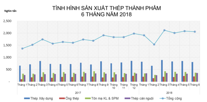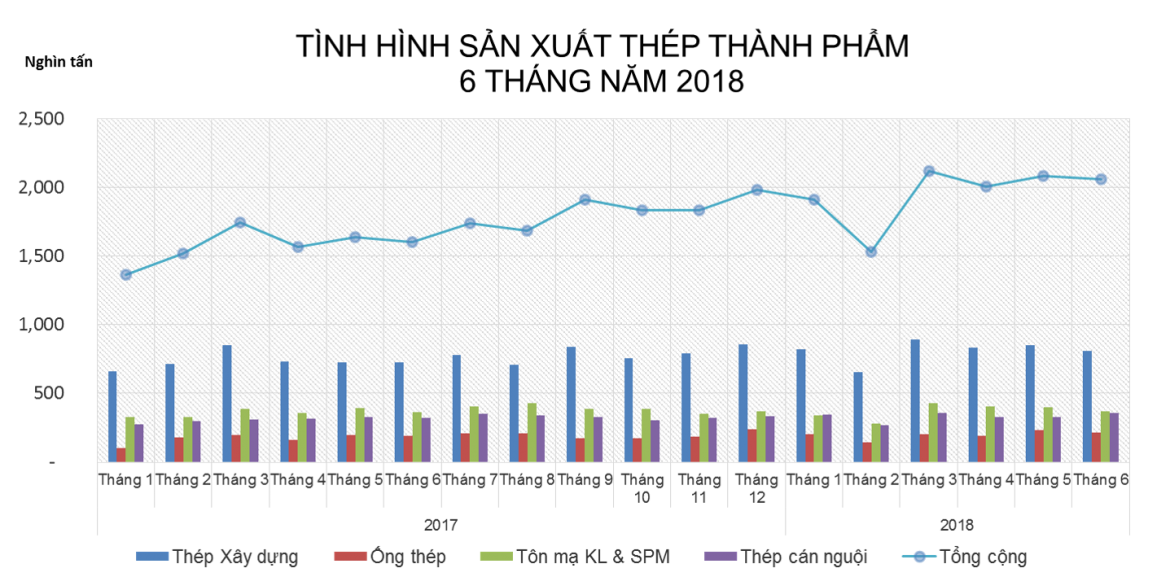 Sản xuất thép thành phẩm 6 tháng đầu năm 2018 (VSA).