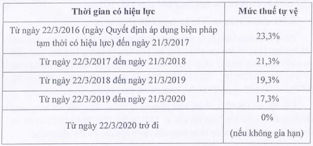 Ngày 9/11/2016, Bộ Công Thương cũng đã có văn bản hướng dẫn việc áp dụng biện pháp tự vệ chính thức đối với phôi và thép dài nhập khẩu vào Việt Nam.