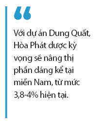 Hòa Phát từng có kinh nghiệm chiếm lĩnh thị trường miền Bắc (ở miền Bắc, Hòa Phát cùng với Thái Nguyên, Việt Đức nắm giữ khoảng 60% thị phần). Còn nhớ, khi bắt đầu vận hành các lò cao tại khu liên hợp thép Hải Dương, Hòa Phát đã liên tục tăng thị phần tại miền Bắc từ 24,7% (năm 2013) lên 33,4% (9 tháng năm 2017). Giới đầu tư kỳ vọng, ở dự án Dung Quất, Hòa Phát cũng sẽ nâng thị phần đáng kể tại miền Nam, từ mức 3,8-4% thị phần hiện tại. Hòa Phát còn có thể tạo thế đứng mới khi tham gia sản xuất cả thép dài chất lượng cao (1 triệu tấn) và thép dẹt cán nóng HRC (công suất 2 triệu tấn). Dự kiến, khi dự án Dung Quất hoàn tất (năm 2020), các sản phẩm này của Hòa Phát sẽ có thể cạnh tranh trực tiếp với Formosa.