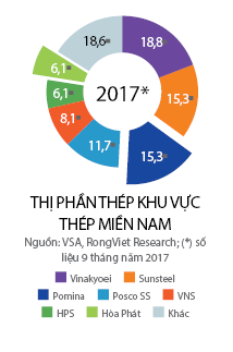 Miền Nam được xem là địa điểm mở rộng thị trường lý tưởng. Đây là khu vực kinh tế chủ lực tạo ra gần một nửa GDP toàn quốc và có dòng vốn FDI tăng trưởng mạnh mẽ. Nhưng theo ông Đỗ Duy Thái, Chủ tịch Thép Việt, những năm qua, sức tiêu thụ thép ở miền Nam chỉ bằng một nửa miền Bắc. Xét nguồn cung, ở miền Nam, chưa có doanh nghiệp thép nào chiếm giữ trên 20% thị phần. Miền Nam cũng chưa có nhiều dự án lớn để đón đầu tăng trưởng của thép xây dựng, theo nhận định của Công ty Chứng khoán Rồng Việt (VDSC).