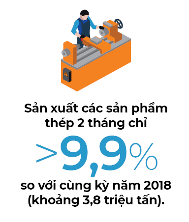 Diễn biến thị trường 2 tháng đầu năm cho thấy sự giảm nhiệt của toàn thị trường. Theo thống kê của Hiệp hội Thép Việt Nam (VSA), sản xuất các sản phẩm thép 2 tháng chỉ tăng 9,9% so với cùng kỳ năm 2018 (khoảng 3,8 triệu tấn). Tổng lượng tiêu thụ tăng 19,9% (đạt 3,6 triệu tấn) chủ yếu nhờ động lực từ kênh xuất khẩu (tăng 19,9%). Theo dự báo của VSA, kỳ vọng tăng trưởng ngành thép trong năm nay chỉ ở mức 10% do ngành đã ở ngưỡng đỉnh của tăng trưởng.