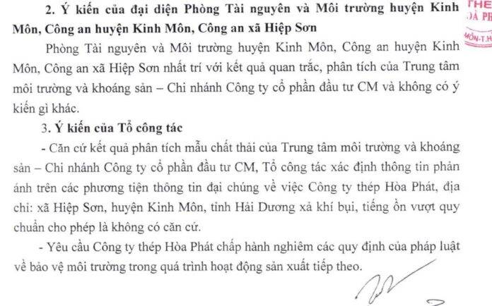 Kết luận của PC49, Công an tỉnh Hải Dương ghi rõ những phản ánh của dư luận về thép Hòa Phát là không có căn cứ.