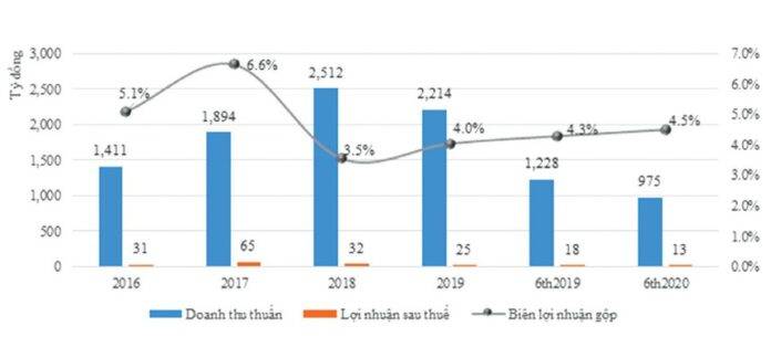 Quý II vừa qua, Công ty báo cáo doanh thu 504,5 tỷ đồng, giảm 5,5% so với cùng kỳ 2019. Lợi nhuận gộp giảm sâu hơn, với mức giảm 38,5% so với cùng kỳ.