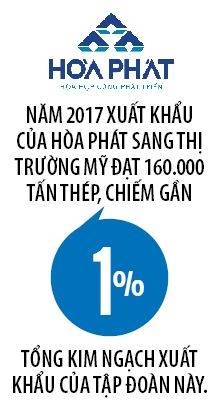 Năm 2017 xuất khẩu của Hòa Phát vào thị trường Mỹ đạt 160.000 tấn thép, chỉ chiếm 1% tổng kim ngạch xuất khẩu của Tập đoàn, còn lại là các thị trường khác như Canada, Úc, Nhật, Singapore, Malaysia, Lào, Campuchia, Philippines… “Thị trường Mỹ hiện chỉ có vài đơn hàng nên không phải vấn đề gì lớn đối với Hòa Phát”, đại diện Hòa Phát chia sẻ. Gần đây nhất, đầu năm 2018, Tập đoàn cũng đã nhận một đơn hàng xuất khẩu 15.000 tấn thép sang Mỹ.