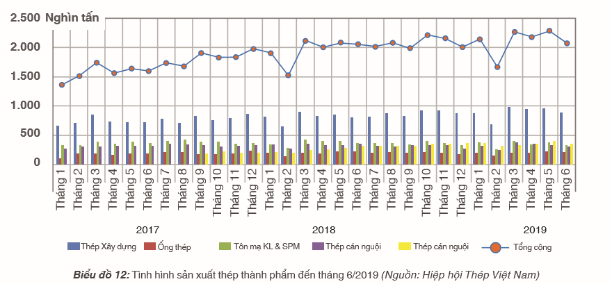 Tại Việt Nam, sản xuất thép tháng 6 đạt hơn 2 triệu tấn, giảm 9,06% so với tháng trước, nhưng tăng 1% so với cùng kì năm trước. Sản lượng bán đạt hơn 1,8 triệu tấn, giảm 6,35% so với tháng trước, nhưng tăng 4,3% so với cùng kì năm trước.