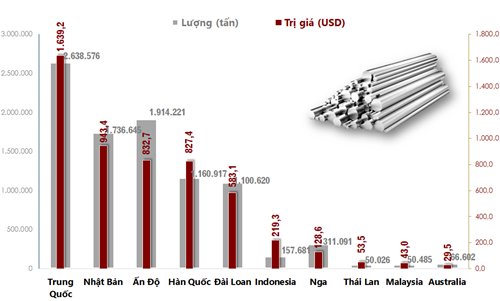 Top 10 thị trường Việt Nam nhập khẩu sắt thép nhiều nhất 8 tháng 2020