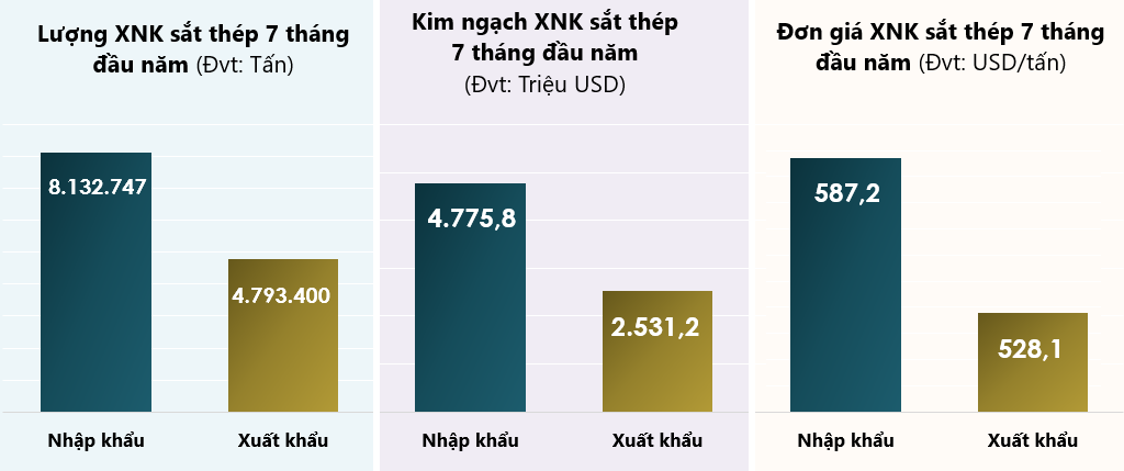 Tình hình xuất nhập khẩu sắt thép của Việt Nam 7 tháng đầu năm 2020