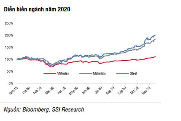 Giá tăng có xu hướng tăng sẽ tiếp tục thúc đẩy tỷ suất lợi nhuận của các công ty thép cải thiện trong ngắn hạn, nhưng có khả năng đảo chiều. SSI cho rằng giá thép sẽ vẫn ổn định trong những tháng tới do nhu cầu thế giới phục hồi và gián đoạn nguồn cung. Tuy nhiên, giá thép có thể đạt đỉnh vào một thời điểm nào đó trong năm 2021 khi nguồn cung dần ổn định (sản lượng thép của Trung Quốc dự kiến sẽ tăng khoảng 2% trong năm 2021, sau khi tăng khoảng 5% trong năm 2020). Sự đảo ngược của xu hướng giá thép hiện tại có thể dẫn đến việc tỷ suất lợi nhuận của các công ty sản xuất thép sẽ về mức bình thường.