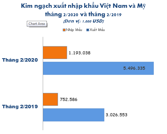 Tháng 2/2020, kim ngạch xuất nhập khẩu hàng hóa của Việt Nam và Mỹ tăng trưởng mạnh cả hai chiều so với hồi tháng 2/2019. Trong khi trước đó vào tháng 1, cả kim ngạch xuất khẩu và nhập khẩu của Việt Nam với Mỹ đều giảm so với cùng kì năm trước.